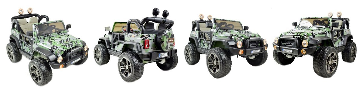 | Komfort jazdy: | miękkie koła, SYSTEM WOLNEGO STARTU i SYSTEM HAMOWANIA, otwierana maska, otwierane koło zapasowe, pasy dla dwójki dzieci, amortyzatory tył, uchwyt do holowania, miękkie siedzenie |