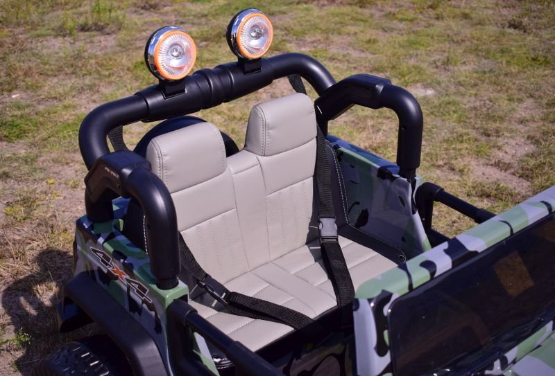 Posiada wzmocnione nadwozie, miękkie siedzenie i system wolnego startu z pilotem 2,4 Ghz z funkcją bezpiecznego hamowania.